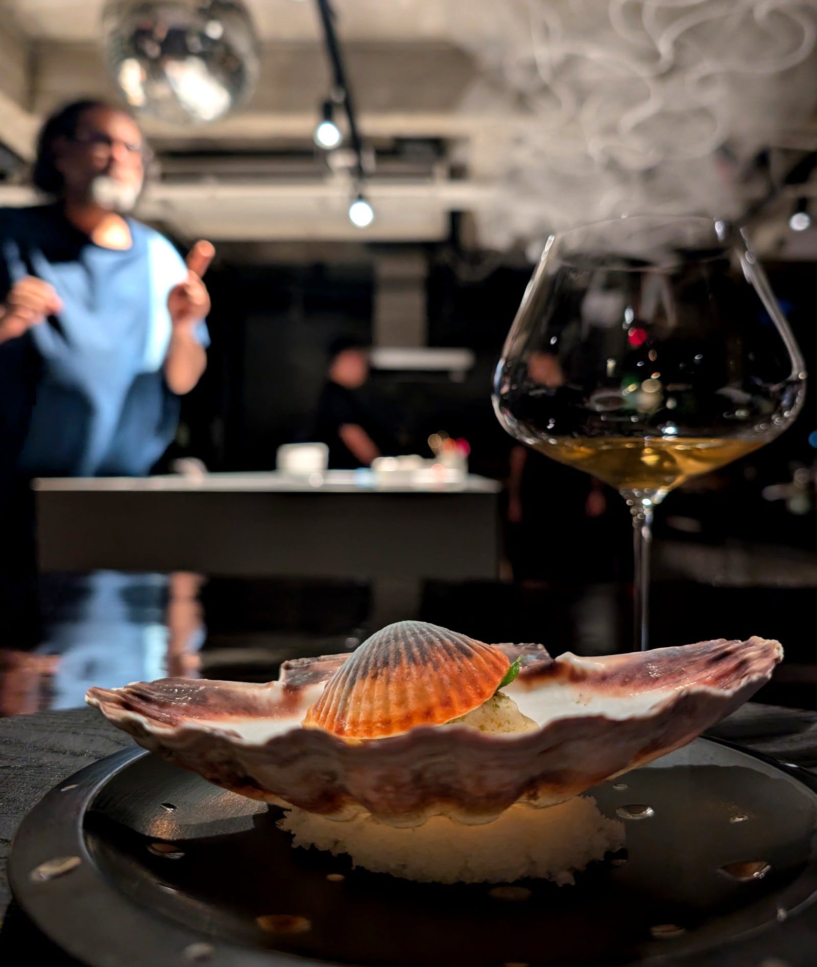 The trick is to combine Thailand’s high-intensity flavours with comfortable seating and good wine, and Nusara managed just that for me. Chef Thitid ‘Ton’ Tassanakajohn stays true to his Thai roots and doesn’t compromise on the spice levels, unless you plead for things to be toned down. I loved his riffs on yellow crab curry and tom yum. Chaisiri (Ton’s brother) offers some inspired pairings. A fruity pét nat from Pépin dovetailed nicely with all the aromatics and spices. Who knew that premium-grade Nebbiolo would be a match for the most fiery dish on the table, the beef pad kaprao? But it works effortlessly, the tannins and the acidity of Gaja’s Barbaresco (available in the premium pairing) somehow rising above the spice and cleansing the palate.