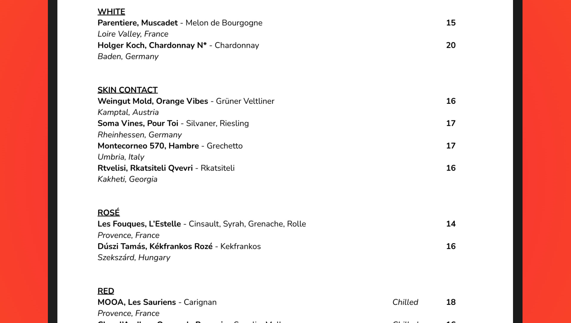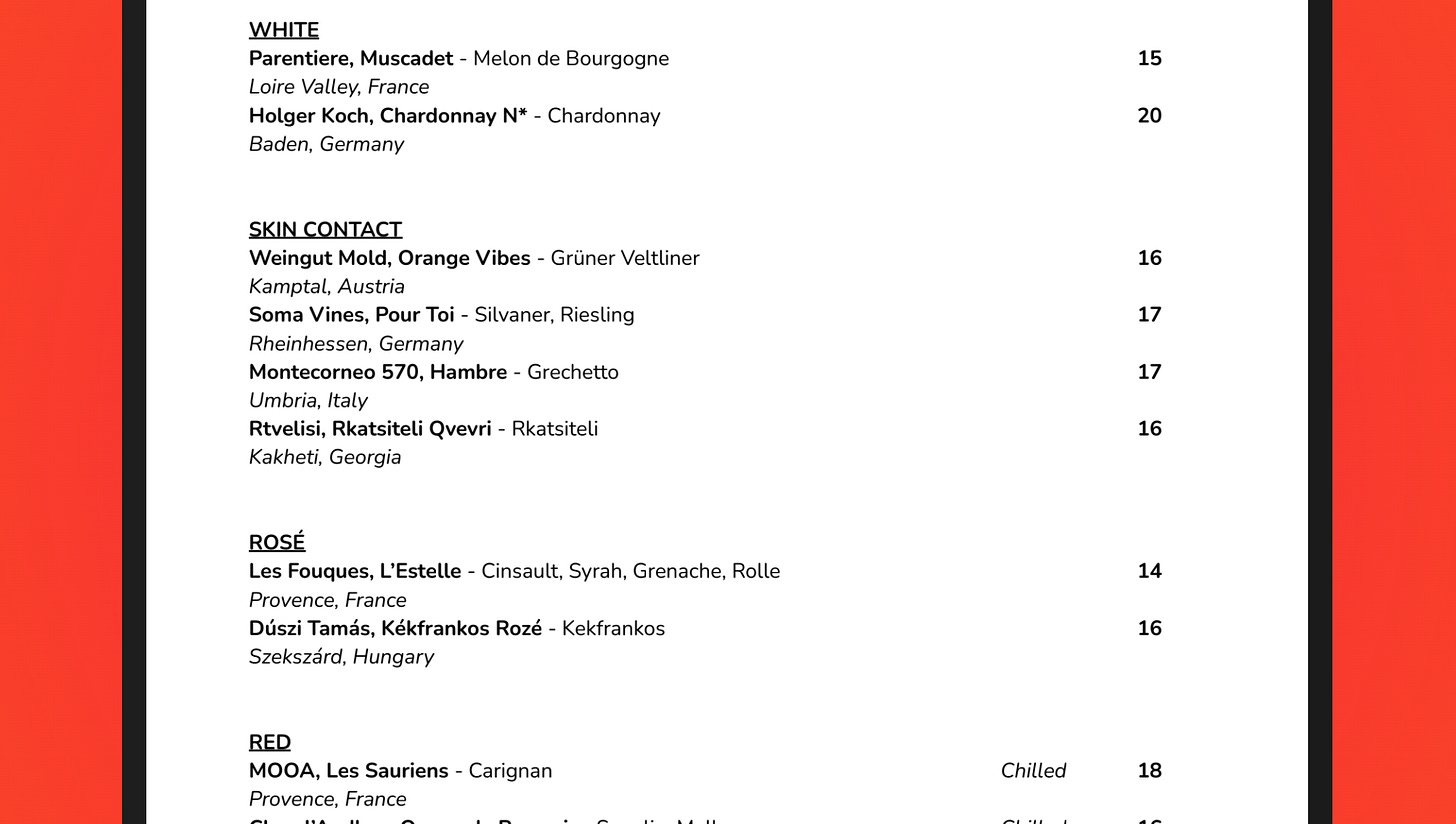 I understand it’s not always easy for restaurants or retailers to figure out the best way of categorising - especially in the 21st century, where we have gender-bendering styles such as red-white blends, orange wines made with gris varieties and reds made with almost no skin contact (cf. glou-glou).